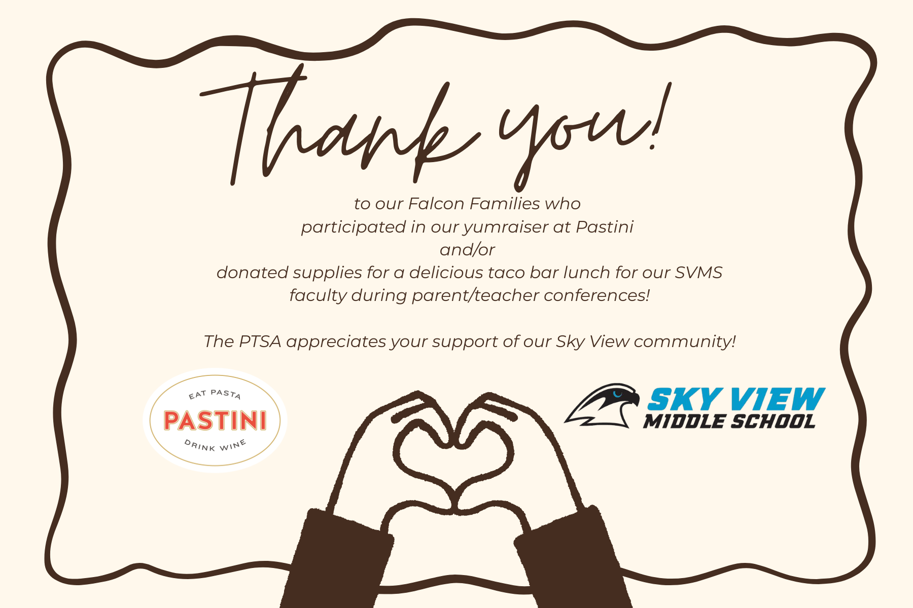 Proceeds benefit the Sky View PTSA, supporting teacher grants, student activities, school projects, and the 8th-grade celebration!