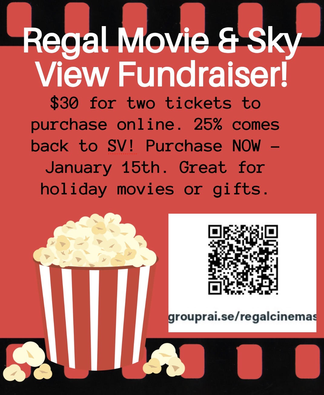 - The first is with Regal Cinema! You can purchase Nov 1st through Jan 16th, and 25% of each Regal Movie Ticket Bundle (2 tix for $30) is being donated back to Sky View PTSA, when you buy via our fundraising sales page! Help us smash our fundraising goal and enjoy the latest blockbusters throughout the holidays or you can give as GIFTS! These tickets are redeemable online or in-store at your nearest Regal location. Friends and family are welcome to join in, so please share this link with anyone interested: https://www.